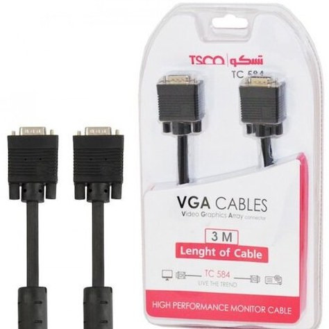 کابل «TC 584» محصولی از شرکت «تسکو» است. این محصول درواقع یک کابل رابط VGA برای انتقال تصویر است. بسیاری از دستگاهها از جمله مانیتورها، لپتاپها و ویدئو پروژکتورها برای اتصال به رایانه و انتقال تصویر از پورت VGA بهره میبرند. در هر دو سمت این کابل یک کانکتور ۱۵ پین VGA قرار گرفته شده است. طول کابل TC 584 برابر با ۳متر است که این موضوع باعث میشود فضای زیادی از محیط اشغال نشود. جنس پوشش روی کابل TC 584 از PVC است که باعث میشود این کابل در برابر بسیاری از صدمات از جمله گره خوردگی یا پاره شدن مقاوم باشد. شرکت تسکو از شرکتها ایرانی فعال در حوزهی طراحی و تولید تجهیزات جانبی رایانه است که محصولاتی با کیفیت ساخت خوب و قیمت مناسب ارایه میکند.
