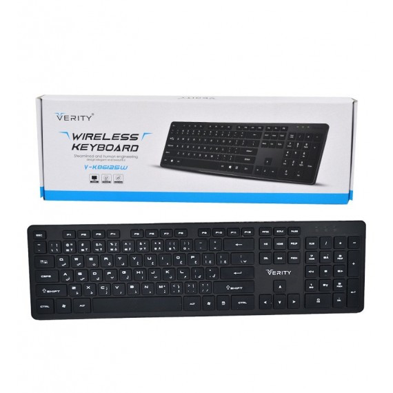 تعداد کلید ها استاندارد 104 عدد است که روان هستند و از خستگی کار با آن ها جلو گیری می کند.اتصال این کیبورد از نوع بی سیم می باشد که از طریق یک دانگل به دستگاه شما متصل می شود.کلید های کیبورد وریتی مدل V-KB6125W بی صدا هستند که در هنگام تایپ از ایجاد صدای اضافه جلو گیر می کند. قابل استفاده با انواع سیستم عامل ها است. طول عمر بالای کیلد ها بیش از 8000000 بار فشرده شدن نیز می باشد. طراحی این محصول زیبا و کارآمد است.